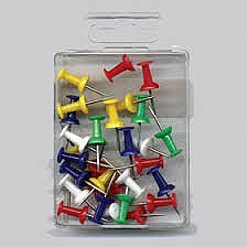 סיכות ללוח שעם בעלות ראש צבעוני מגיעות בקופסאות פלסטיק קשיחה